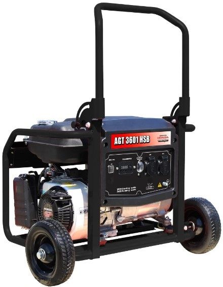 AGT 3601 HSB TTL (2,4 кВт, 1 фаза) — Двигатель Honda GX200 с гарантией 3 года для профессионального использования; Транспортная система с колесами и складной рукояткой в стандартной комплектации; Две однофазные розетки Schuko 16 А; Цифровой мультиметр с дисплеем напряжения, частоты и количества часов работы; Разъем заземления на панели; Защита от отсутствия масла с автоматическим отключением генератора; Индикатор уровня топлива; Топливный бак 15 л; Крепкий металлический каркас; Альтернатор AVR; Бесшумный глушитель; Общая теплозащита.