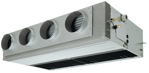 Канальный блок системы VRF предназначен для удобного размещения в нише потолка, также может быть установлен за подвесным потолком. Блок обеспечивает точное поддержание комфортного температурного уровня и полное распределение воздуха по всему пространству, даже при условии сложной архитектуры.