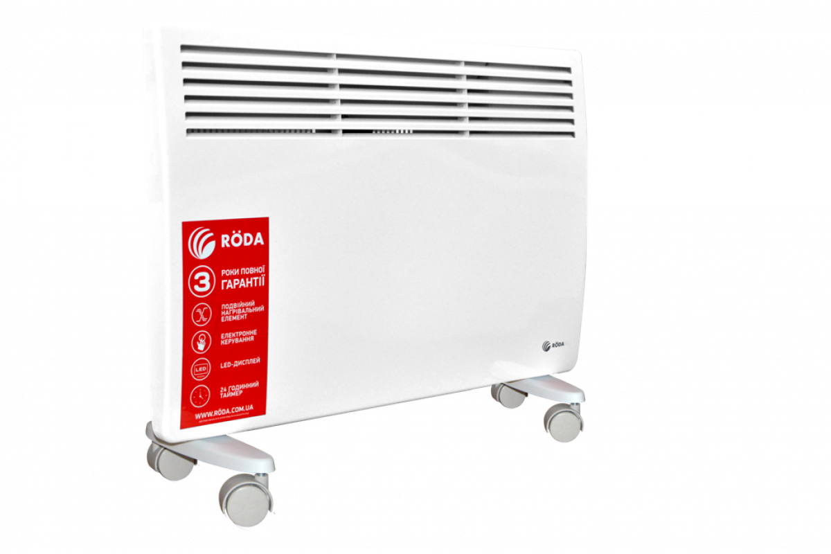 Благодаря небольшим размерам, значительно упрощаются поиски места для установки, для этого можно использовать пол, а также подвешивать на стену. За счет высокого уровня защиты от влаги данный конвектор можно устанавливать даже в ванной. Наибольшее внимание в конвекторах уделяется нагревательным элементам, в особенности их эффективности и надежности. RÖDA используется в конвекторе RB2-1500 двойной нагревательный элемент закрытого типа, который изготавливается из алюминия. Этот нагревательный элемент может функционировать как на полную мощность, чтобы быстро нагреть помещение, так и используя лишь половину от номинальной мощности, для длительного поддержания тепла. С помощью работы нагревательного элемента лишь на половину от номинальной мощности конвектор достигает наиболее эффективного использования электрической энергии.