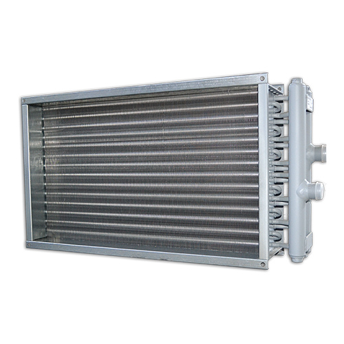 Корпус нагревателя выполнен из металлической оцинкованной стали. Коллекторы изготовлены из сварных стальных труб, покрытых синтетической краской. Теплообменник состоит из алюминиевых пластин (толщиной 0,1 мм), установленных на медных трубках. Стандартная версия модели имеет двухрядную переменную геометрию. Водяной нагреватель необходимо проверять на герметичность под давлением 2 МПа в течение 5 минут под водой.