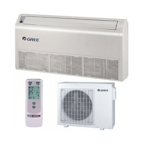 Полупромышленные неинверторные сплит-системы Gree U-Match напольно-потолочного типа – это недорогое оборудование, идеально подходящее для небольших кафе со стеклянными фасадами, магазинов с тонкими стенами, бутиков, баров или офисов, где нет места для настенных блоков, а потолки низкие.