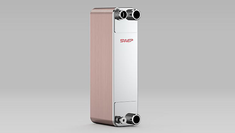 ППТО SWEP FI22AS: высокоэффективный конденсатор и испаритель, оптимизированный для систем с реверсивным тепловым насосом, в которых используются экологически чистые и природные хладагенты. Используя запатентованную технологию AsyMatrix2, он обеспечивает высокие тепловые характеристики при низком падении давления на стороне вторичного контура. Такая конструкция делает его идеальным для систем с жесткими тепловыми и гидравлическими требованиями. Компактная конструкция канала сводит к минимуму требуемую заправку хладагента, что делает его отличным выбором для бытовых систем с тепловым насосом.
