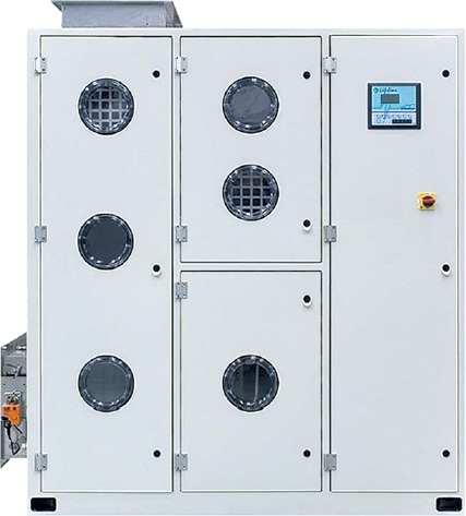 На всасывании и нагнетании статическое давление составляет 800 Па. Для этого требуется распределение очищенного воздуха непосредственно через кондиционируемое помещение через сеть трубопроводов и использование абсолютных фильтров. Глушитель входит в основную комплектацию кондиционера. Фильтр G4 часто располагается на входе рециркуляционного воздуха перед вытяжным вентилятором, чтобы элементы кондиционера оставались чистыми. Установка абсолютного фильтра на входе рециркуляционного воздуха перед глушителем возможна благодаря высокой статической прочности вытяжного вентилятора. Этот фильтр вместе с блоком разряжения в помещении предотвратит загрязнение соседних помещений веществами, выделяемыми во время обслуживания. Датчик перепада давления, прикрепленный к контроллеру, используется на каждом фильтре, чтобы показать, загрязнен ли фильтр.