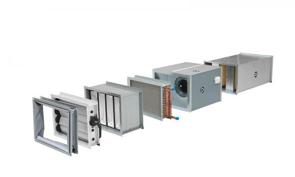 Основной комплект состоит из тихого центробежного канального вентилятора, одного или нескольких, с надежным немецким двигателем и высококачественными подшипниками, фильтрующими кассетами, устройствами рекуперации тепла, нагревателями и, возможно, охладителями.
