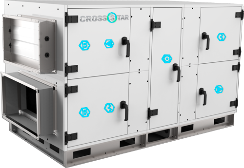 Система Aerostar GlobalStar приточно-вытяжного типа имеет двигатель, эффективность которого достигает 90%. Также в конструкции присутствует рекуператор, благодаря которому энергопотребление снижается на 30%. Лопасти вентилятора стальные, покрытые специальным напылением из цинка. Внешний корпус металлический, а внутренние перегородки и стены выполнены из сендвич-панелей на основе минеральной ваты.