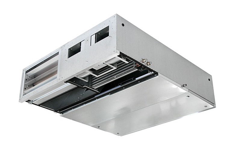 В устройство входит перекрестный теплоутилизатор, байпас теплоутилизатора, два фильтра F5, вентилятор переменного тока, нагреватель водяной, охладитель водяной и два воздушных клапана.