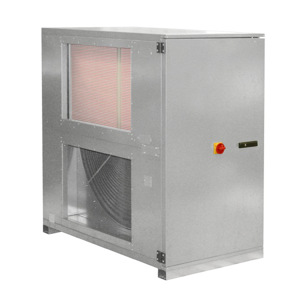 Оснащен роторным теплоутилизатором, двумя фильтрами F5, нагревателем водяным, преобразователем частоты и системой автоматизации. Только при установке устройства в помещении допускается работа при температуре окружающей среды < -20 °C.