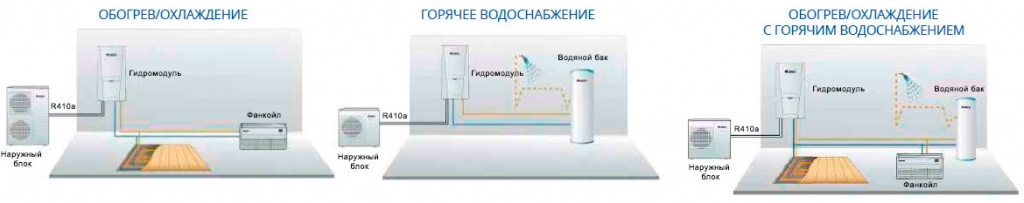 Нагрев возможен при температуре от -20 до +35 ºС, охлаждение – от +10 до +48 ºС, а ГВС – от -20 до +45 ºС.
