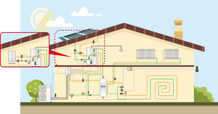 Тепловые насосы Hisense Hi-Aqua Smart AHM-070UXCSAPA3/AHW-070UCSDP довольно универсальны. Они могут устанавливаться как в совершенно новом строении в процессе проектировки и строительства, так и в уже готовом здании во время реконструкции. Система может также работать совместно с центральным источником отопления, котлом масляного либо газового типа.