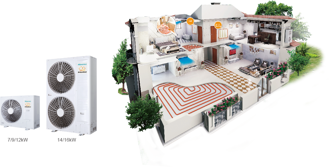 Тепловые насосы Hisense Hi-Aqua Smart AHM-160UXCSAPA3/AHW-090UCSDP довольно универсальны. Они могут устанавливаться как в совершенно новом строении в процессе проектировки и строительства, так и в уже готовом здании во время реконструкции. Система может также работать совместно с центральным источником отопления, котлом масляного либо газового типа.