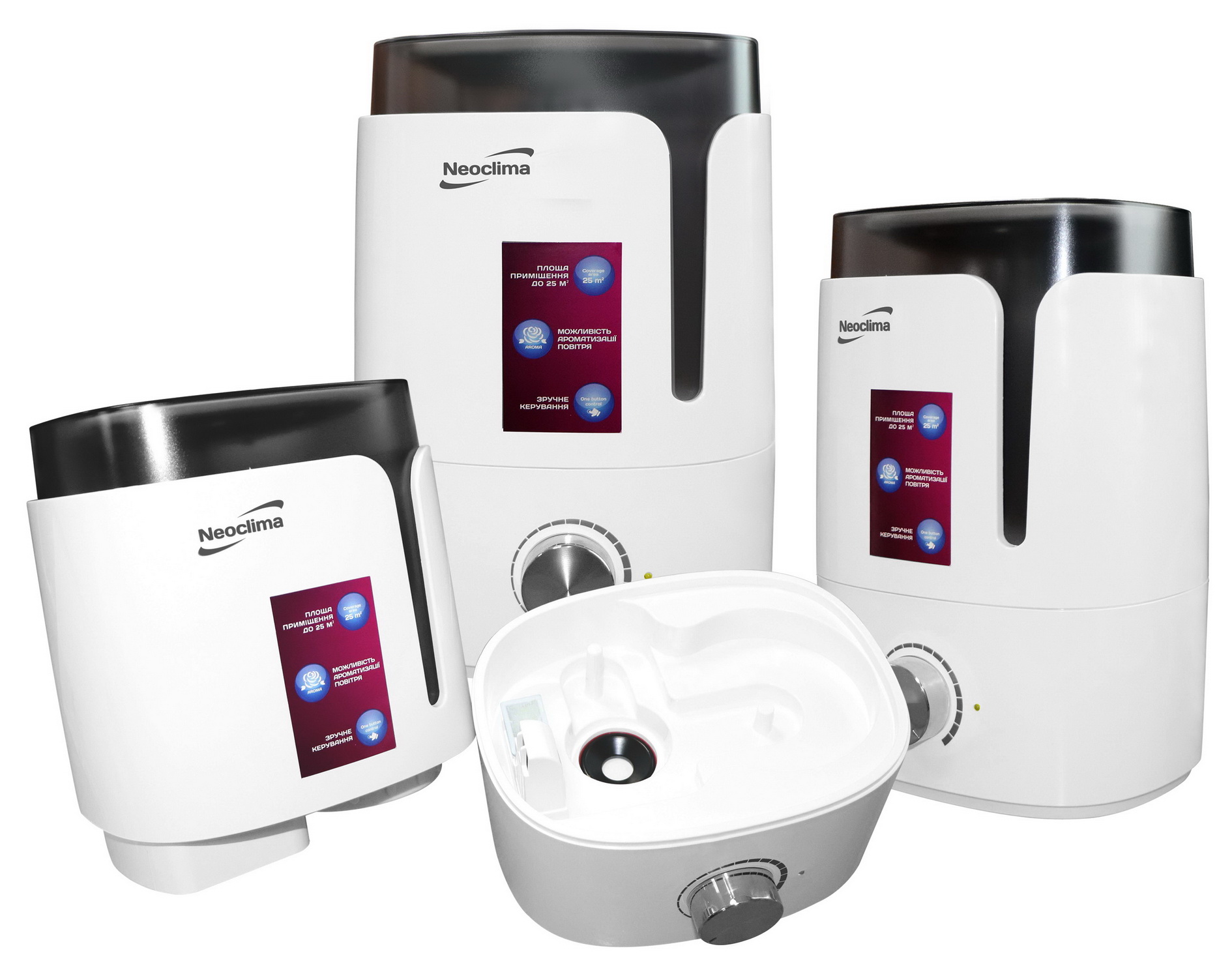 - Если в Neoclima SP-25W недостаточно воды, а также, если увлажнитель переворачивают, то срабатывают вмонтированные датчики отключения. Благодаря чему обеспечивается дополнительная защита и комфортабельность при его эксплуатации.