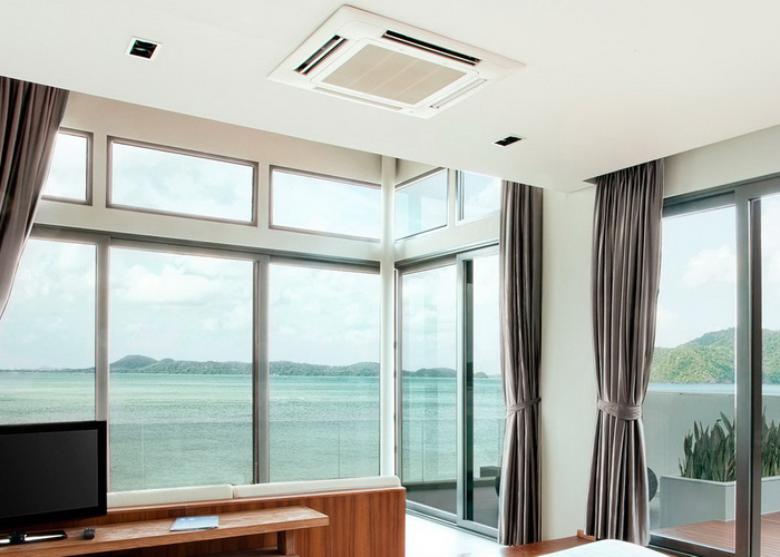 В помещениях с подвесными потолками вместо настенного можно использовать однопоточный внутренний блок Mitsubishi Electric SLZ-KA25VAL кассетного типа. Для этого требуется высота потолка всего 175 мм. Распространение воздуха происходит как по вертикали, так и по горизонтали. Доступ ко всем компонентам устройства осуществляется через декоративную панель, что устраняет необходимость в отдельном люке в потолке для обслуживания.