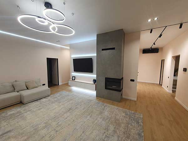 Для резервирования в тепловом насосе встроен электротон на 9 кВт и в бойлере ТЭН на 3 кВт. В доме также смонтирована печь-камин на дровах, что позволяет уютно и безопасно переждать любое несогласие без электроэнергии.