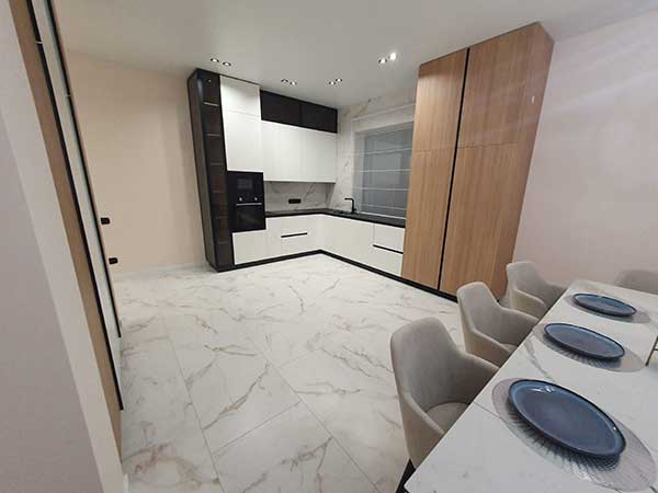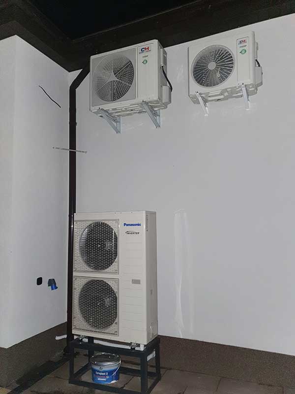 В частном 1 этажном доме площадью 180 м2 в коттеджном городке White Stone смонтирован тепловой насос Panasonic T-CAP 12 кВт и котельная с бойлером для ГВС, буферной емкостью, 3-х ходовым краном. Этот тепловой насос работает в качестве основного источника тепла и горячей воды в доме. Panasonic Aquarea T-CAP KIT-WXC12H9E8 гарантированно работает на отопление до -28 оС и ниже, а при -20 оС извне выдает номинальную тепловую мощность 12 кВт только благодаря компрессору.
