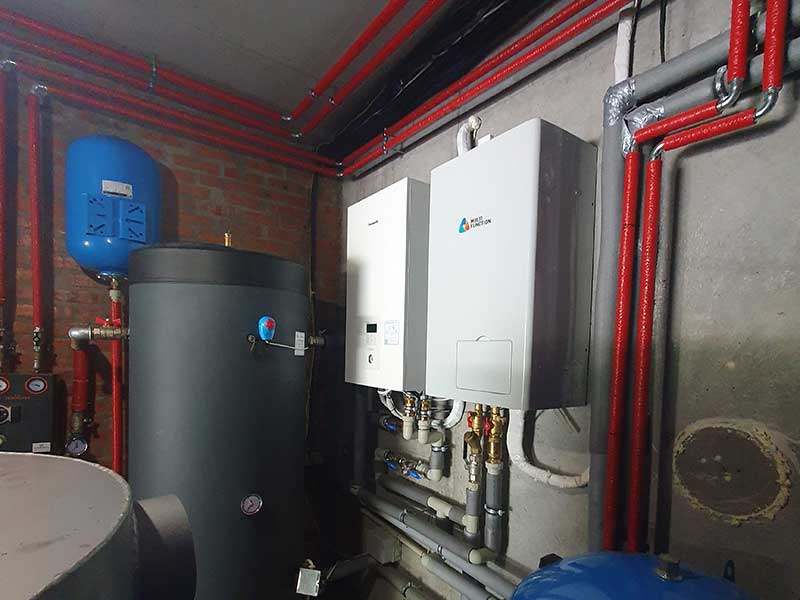 В теплопункте дома для стабильной работы системы также установили буферную емкость на 500 литров и бойлер с теплообменником на 500 литров, ведь в доме 8 санузлов и разветвленная система теплоснабжения.