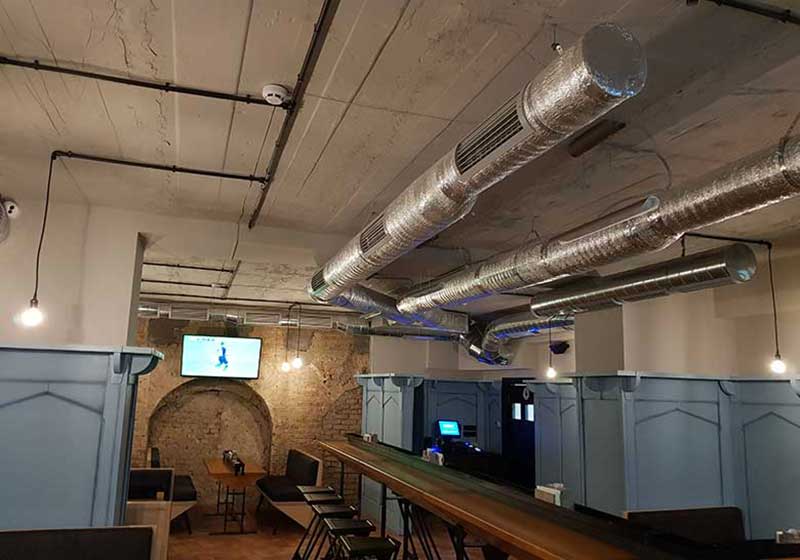 В пабе-ресторане «Мокрі Вуса» в Киеве внедрена новая система отопления, вентиляции и кондиционирования с прицелом на полную энергоэффективность. Использование электричества в помещениях ограничено, поэтому инженеры боролись за каждый кВт.