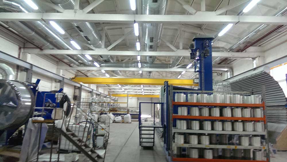 Мощная система аспирации и общеобменной вентиляции полностью удаляет из помещения производства труб все загрязнения и обеспечивает допустимые НДС. Благодаря рекуператорам тепла в 2 мощных вентиляционных установках удалось обеспечить значительную экономию энергоресурсов – до 70%.