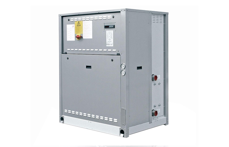 Внутрішній блок Climaveneta NECS-ME 0152-1604 для виробництва охолодженої води, який може бути підключений до віддаленого конденсатору з герметичними ротаційними спіральними компресорами, що працюють з R410A, пластинчастим теплообмінником, звареним пайкою, і терморегулюючим клапаном. Панелі та підставу з гарячеоцинкованої листової сталі, пофарбованої фарбою.