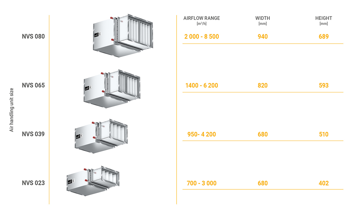 Основний комплект складається з тихого відцентрового канального вентилятора, одного або декількох, з надійним німецьким двигуном і високоякісними підшипниками, що фільтрують касетами, пристроями рекуперації тепла, нагрівачами і, можливо, охолоджувачами.