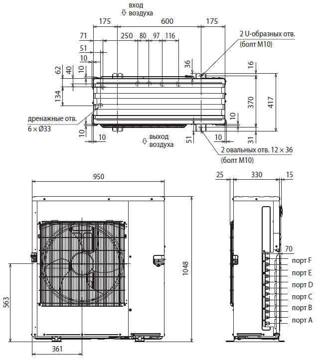 Від конструкції зовнішнього блоку залежить його ефективність. Кожен блок розрахований на підключення від двох до шести внутрішніх модулів і відрізняється кількістю портів (2… 6 шт.). Ця модель призначена для об’єднання 3 внутрішніх блоків. Високоефективний компресор з інверторним керуванням забезпечує низьке споживання енергії. Металевий міцний корпус зовнішнього пристрою має захисні решітки різної товщини. Оптимальна конструкція забезпечує просту транспортування і установку. Автоматична діагностика панелі управління і перевірка з’єднань фреонової лінії допомагають при монтажі.