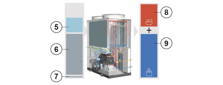 - Пряма версія для внутрішнього теплообміну в приміщеннях або версія з водяним охолодженням.
