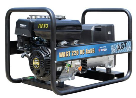 AGT WAGT 220 DC RaSB (5,2 кВт, 3 фази) - Двигун чотиритактний; Ручний запуск; Виходи для зварювального струму; Ручка ступінчастого регулювання зварювального струму; Оснащений датчиком контролю рівня оливи; Однофазний термозахист; Лічильник годинн роботи; Термоконтактний вимикач.