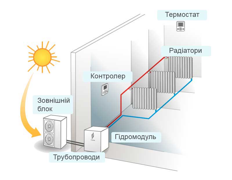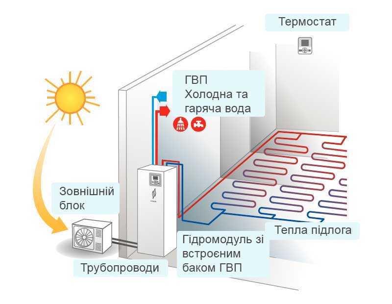 Тепловий насос відбирає тепло з навколишнього середовища і переносить його в приміщення, витрачаючи при цьому електроенергію. Звідки воно береться взимку? Зовнішнє повітря, вода і земля отримують тепло від сонячних променів, також, як і влітку. Але це тепло є низькопотенційним, або іншими словами, «холодним» теплом, його температура недостатня для нормального функціонування людини. З точки зору науки тепло – це не зовсім те, що ми звикли уявляти, і навіть при -15 °С, воно існує, просто в менших кількостях ніж при +20 °С. Повна відсутність тепла можлива тільки при -273 °С, коли припиняється рух молекул і атомів.