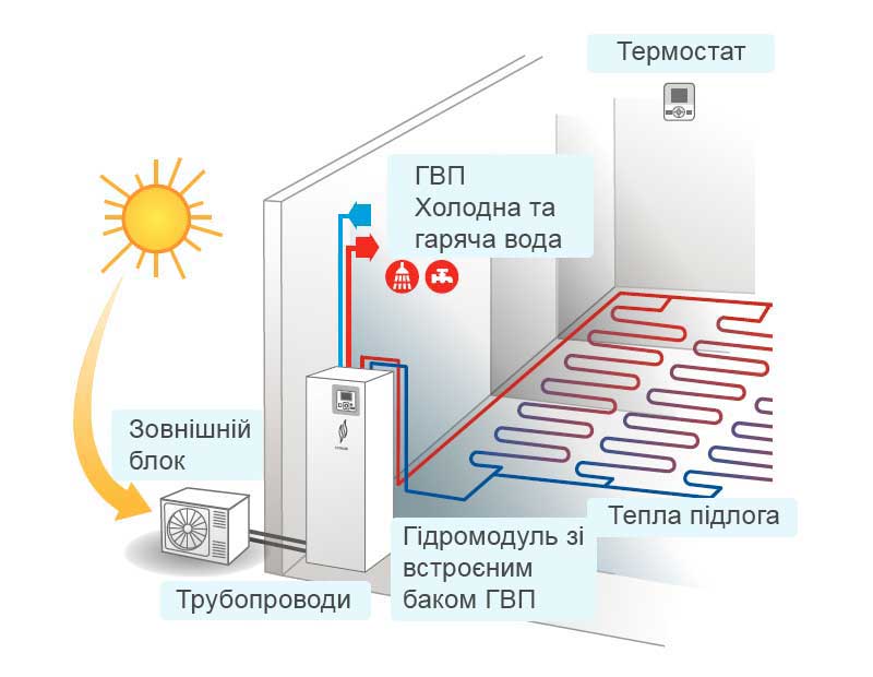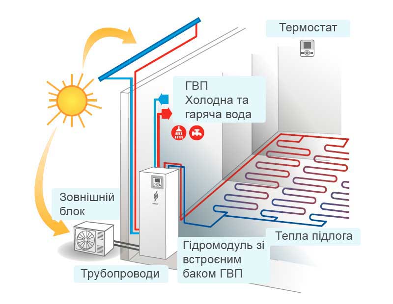 • Система може бути моновалентною і бівалентною з додатковим водонагрівачем;